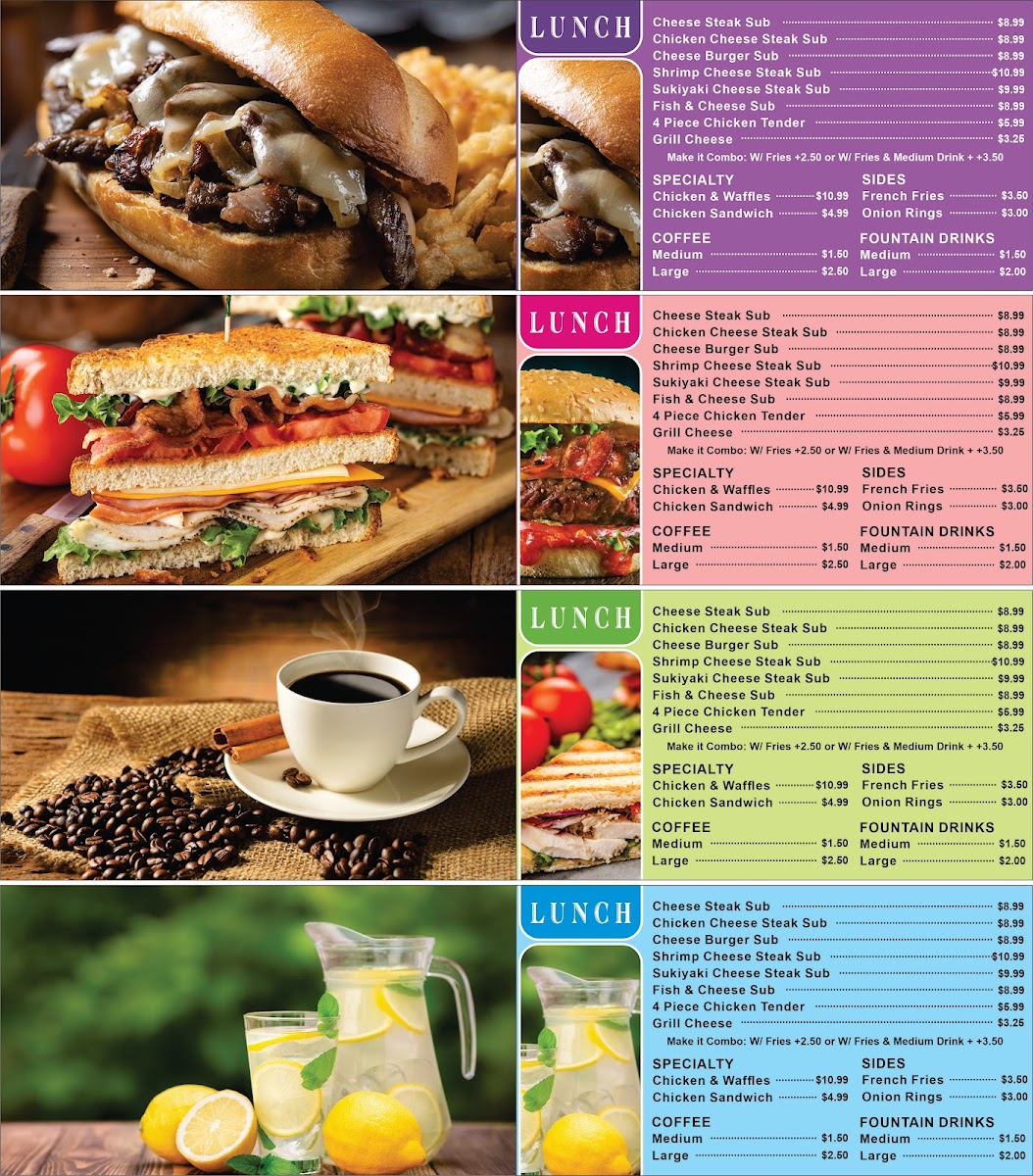 - Hearty sandwiches such as chicken cheesesteak and shrimp subs